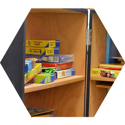 Die Kinder werden nach dem Unterricht vom OGS-Team betreut. Da die meisten Räume auch im Vormittag genutzt werden, sind den Kindern die Räume schnell vertraut. Es gibt im Untergeschoss 2 Multifunktionsräume und die Küche, sowie einen Ruheraum. Im 1.OG einen weiteren großen Multifunktionsraum mit kleiner Küchenzeile sowie 4 Spiel- und Funktionsräume für die Kinder und die Verwaltung.